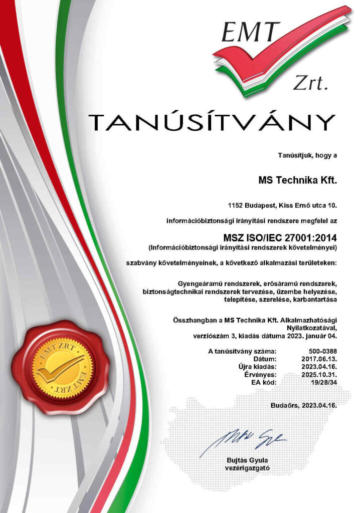 Cégünk birtokában van az összes szükséges minősítésnek, amelyek elengedhetetlenek a biztonságtechnikai rendszerek szakszerű telepítéséhez. Ezek a minősítések biztosítják, hogy munkánk megfelel a legmagasabb ipari szabványoknak és jogszabályi előírásoknak.